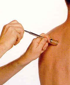 mit einem so genannten „Lebenswecker“ oder anderem Stichelungsgerät