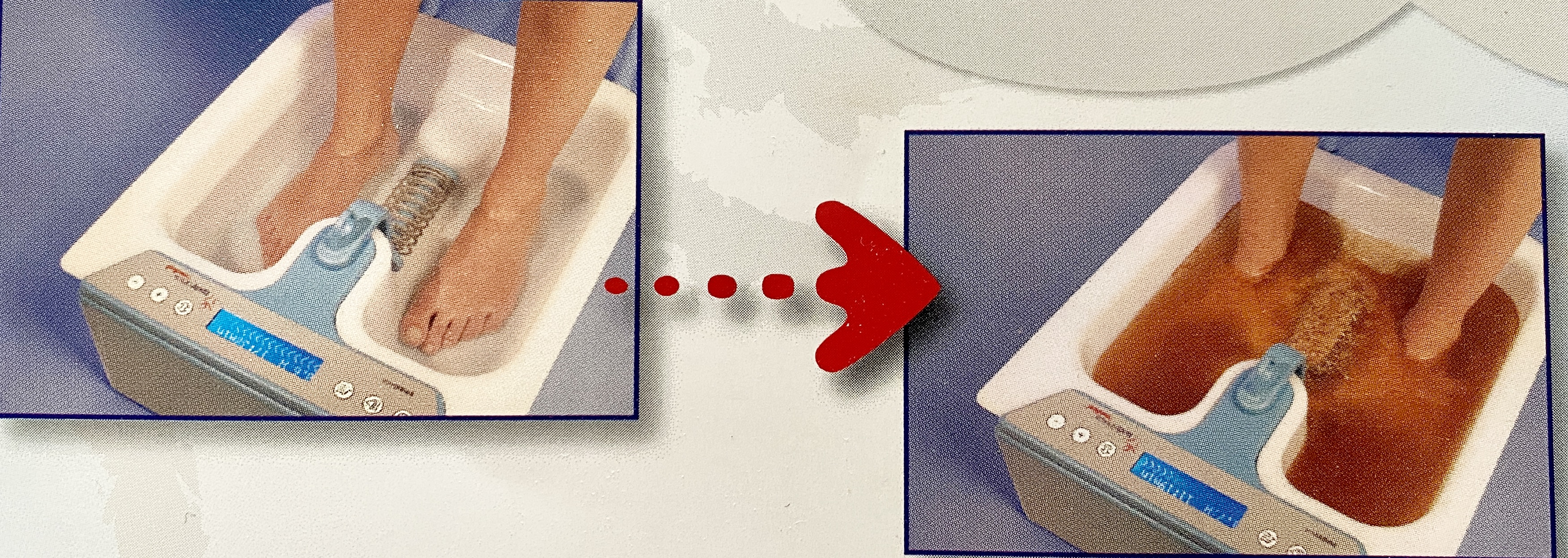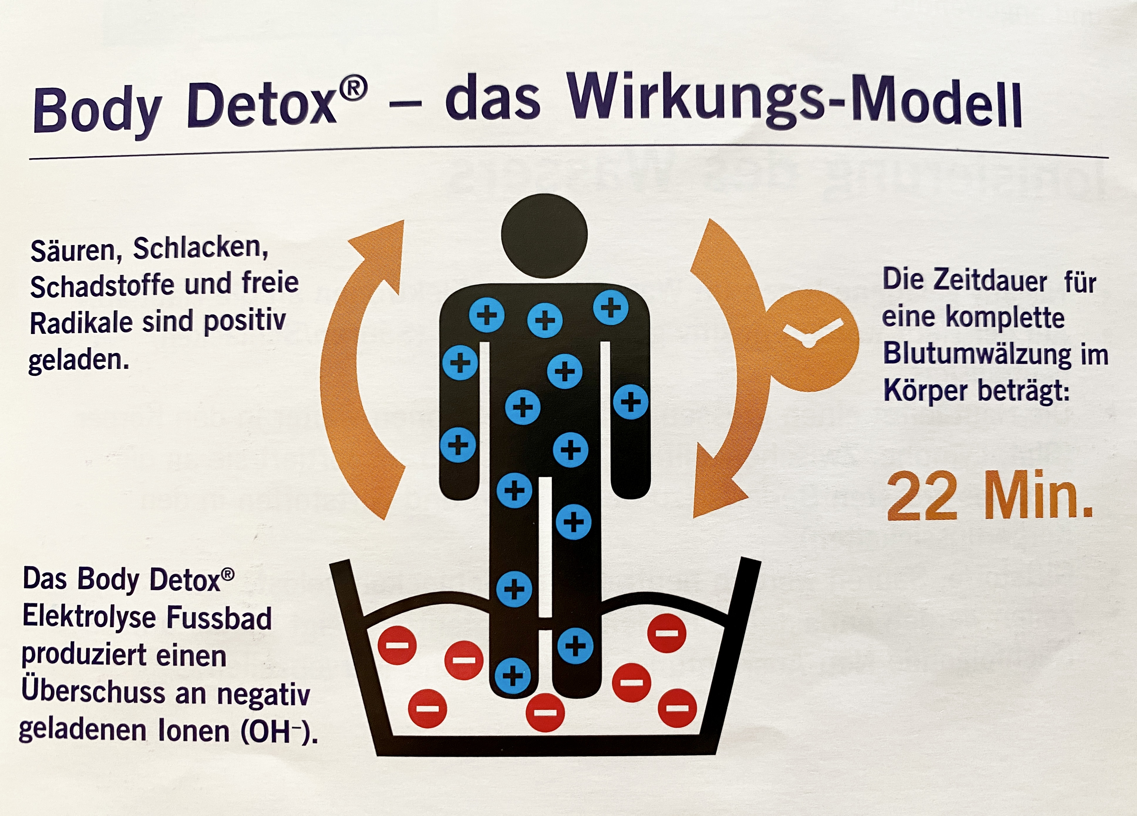 Elektrolyse Fussbad baut einen Überschuss an negativ geladenen Ionen