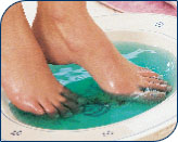 von Händen und Füßen. Sie umfasst das Baden im warmen Seifenwasser,